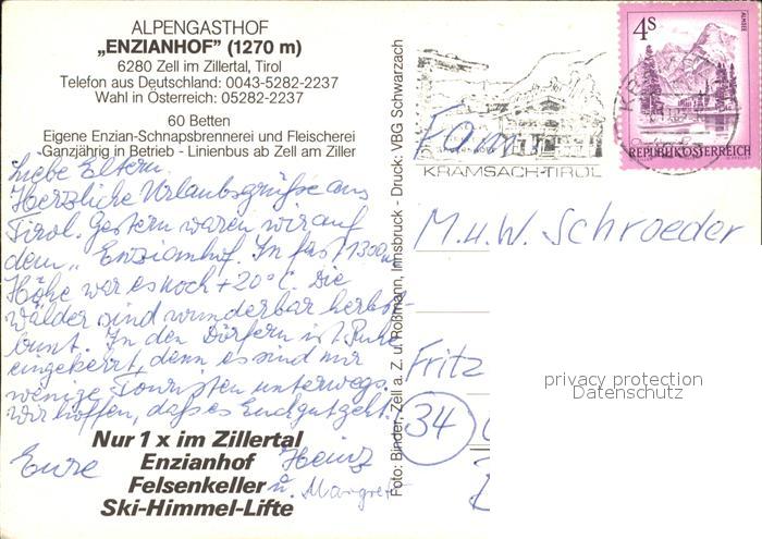 72495913 alte Postkarte Zell Ziller Tirol Alpengasthof Enzianhof Terrasse postalisch gelaufen Erhaltung siehe scans KatCode: 11390335070940