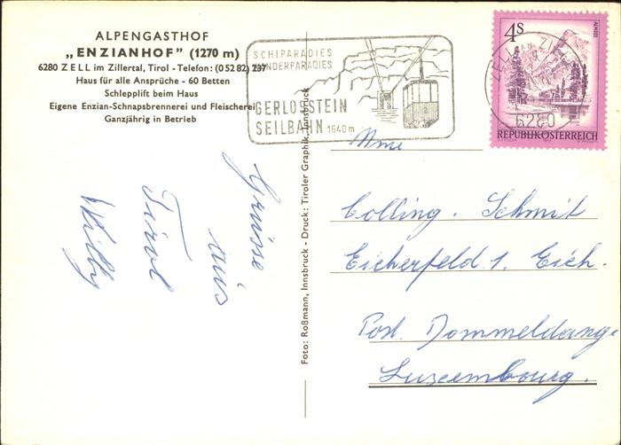 71425202 alte Postkarte Zell Ziller Tirol Alpengasthof Enzianhof Wintersportplatz postalisch gelaufen Erhaltung siehe scans KatCode: 11390335070940