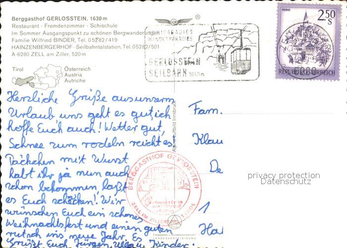 72499579 alte Postkarte Zell Ziller Tirol Berggasthof Gerlosstein postalisch gelaufen Erhaltung siehe scans KatCode: 11390335070940