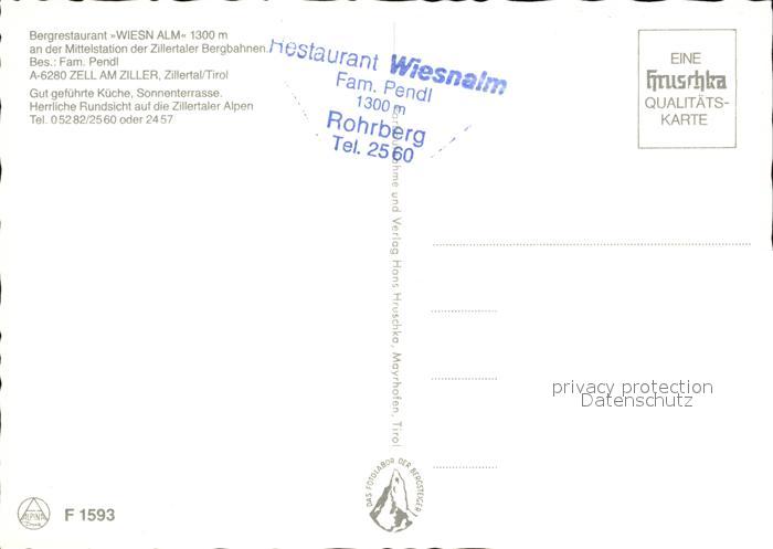 72411857 Zell Ziller Tirol Bergrestaurant Wiesn Alm postalisch nicht gelaufen Erhaltung siehe scans KatCode: 11390335070940