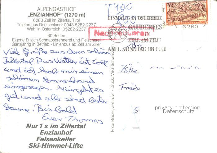 72568444 alte Postkarte Zell Ziller Tirol Enzianhof Alpengasthof Winter postalisch gelaufen Erhaltung siehe scans [KathaD79] KatCode: 11390335070940