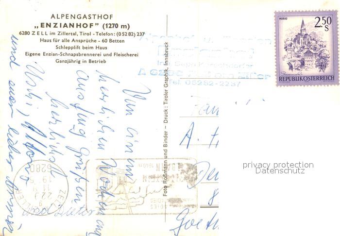 73124615 alte Postkarte Zell Ziller Tirol Enzianhof postalisch gelaufen Erhaltung siehe scans [NatalD47] KatCode: 11390335070940