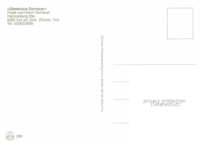 12636579 Zell Ziller Tirol Gaestehaus Dornauer postalisch nicht gelaufen Erhaltung siehe scans [LiesaD40] KatCode: 11390335070940