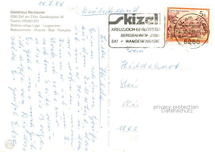 13329419 alte Postkarte Zell Ziller Tirol Gaestehaus Neuhauser postalisch gelaufen Erhaltung siehe scans [WerneD78] KatCode: 11390335070940