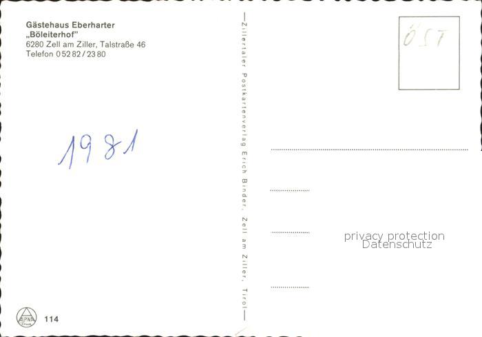 72012067 Zell Ziller Tirol Gasthaus Eberharter Boeleiterhof postalisch nicht gelaufen Erhaltung siehe scans KatCode: 11390335070940