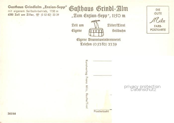 73246175 Zell Ziller Tirol Gasthaus Grindlalm Enzian Sepp postalisch nicht gelaufen Erhaltung siehe scans [KathaD81] KatCode: 11390335070940