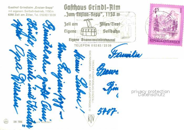 72839244 alte Postkarte Zell Ziller Tirol Gasthaus Grindlalm Enzian Sepp postalisch gelaufen Erhaltung siehe scans [LiesaD40] KatCode: 11390335070940