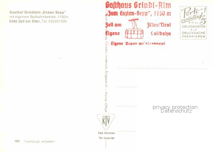 72818270 Zell Ziller Tirol Gasthaus Grindlalm Enzian Sepp Seilbahn postalisch nicht gelaufen Erhaltung siehe scans [LiesaD40] KatCode: 11390335070940