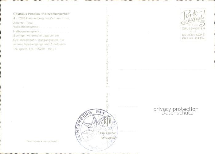 12445178 Zell Ziller Tirol Gasthaus Pension Hainzenbergerhof postalisch nicht gelaufen Erhaltung siehe scans KatCode: 11390335070940