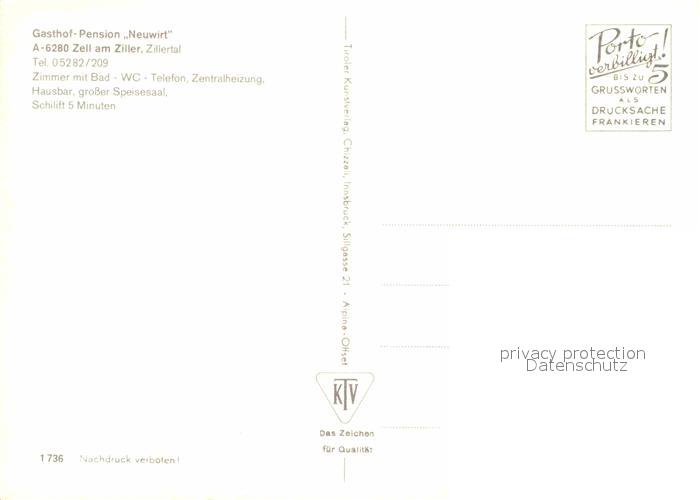 12637365 Zell Ziller Tirol Gasthaus Pension Neuwirt postalisch nicht gelaufen Erhaltung siehe scans [LiesaD40] KatCode: 11390335070940