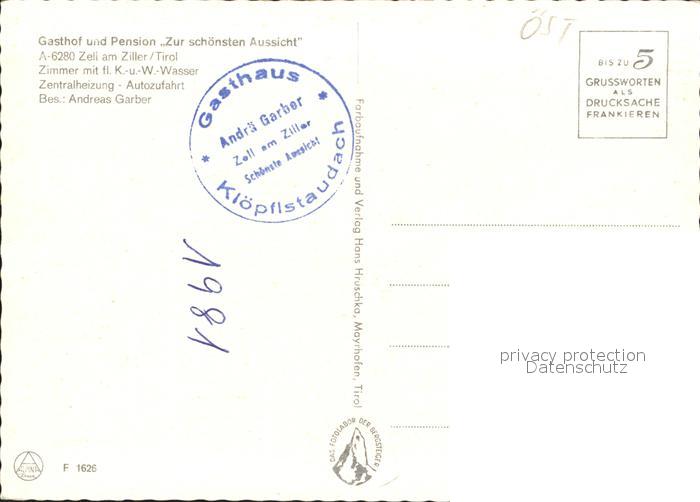 72012065 Zell Ziller Tirol Gasthaus Pension Zur schoenen Aussicht postalisch nicht gelaufen Erhaltung siehe scans KatCode: 11390335070940