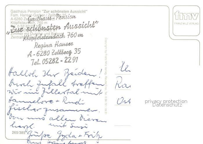 73224271 Zell Ziller Tirol Gasthaus Pension Zur schoensten Aussicht Terrasse postalisch nicht gelaufen Erhaltung siehe scans [FriedD77] KatCode: 11390335070940