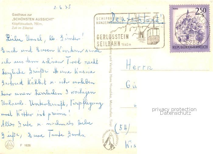 13341240 alte Postkarte Zell Ziller Tirol Gasthaus zur Schoensten Aussicht postalisch gelaufen Erhaltung siehe scans [WerneD78] KatCode: 11390335070940