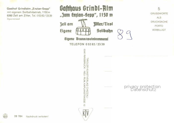 72796615 Zell Ziller Tirol Gasthof Grindalm Enzian Sepp postalisch nicht gelaufen Erhaltung siehe scans [KathaD81] KatCode: 11390335070940