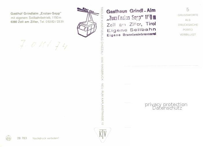 72626793 Zell Ziller Tirol Gasthof Grindalm Enzian Sepp Berggaststaette Zillertaler Alpen postalisch nicht gelaufen Erhaltung siehe scans [FriedD77] KatCode: 11390335070940