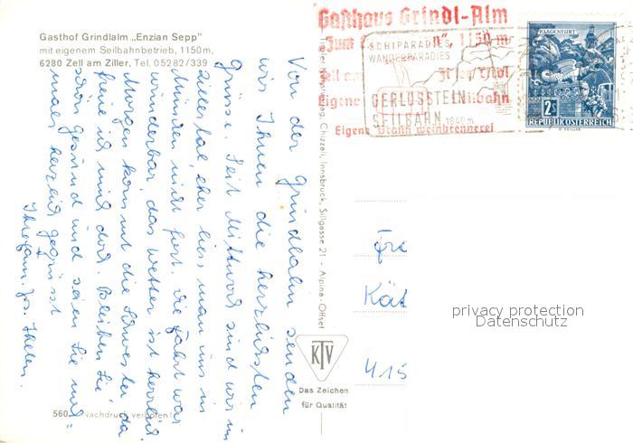 72948150 alte Postkarte Zell Ziller Tirol Gasthof Grindlalm Enzian Sepp postalisch gelaufen Erhaltung siehe scans [KathaD81] KatCode: 11390335070940