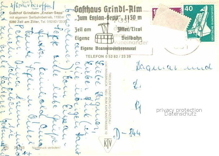 72673403 alte Postkarte Zell Ziller Tirol Gasthof Grindlalm Enzian Sepp postalisch gelaufen Erhaltung siehe scans [FriedD77] KatCode: 11390335070940