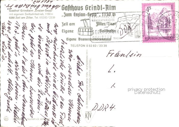 72480984 alte Postkarte Zell Ziller Tirol Gasthof Grindlalm Enzian Sepp postalisch gelaufen Erhaltung siehe scans KatCode: 11390335070940