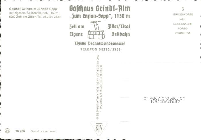 72219323 Zell Ziller Tirol Gasthof Grindlalm Enzian Sepp Seilbahn postalisch nicht gelaufen Erhaltung siehe scans KatCode: 11390335070940