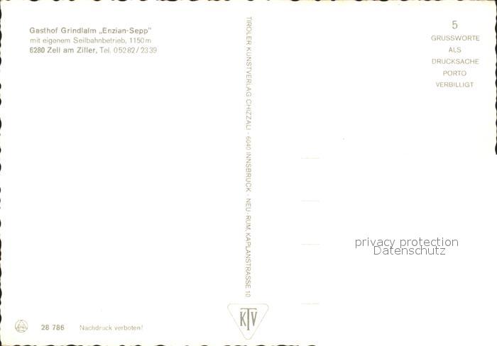 71974424 Zell Ziller Tirol Gasthof Grindlalm Enzian Sepp Seilbahnbetrieb postalisch nicht gelaufen Erhaltung siehe scans KatCode: 11390335070940