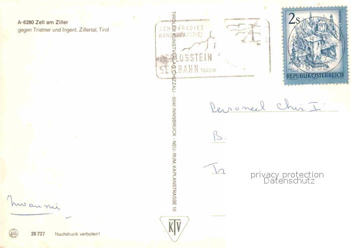 72883419 alte Postkarte Zell Ziller Tirol gegen Trister Ingent postalisch gelaufen Erhaltung siehe scans [LiesaD40] KatCode: 11390335070940