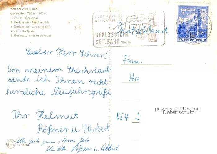 72770954 alte Postkarte Zell Ziller Tirol Gerlosstein Sesselbahn Arbiskogel postalisch gelaufen Erhaltung siehe scans [NatalD47] KatCode: 11390335070940