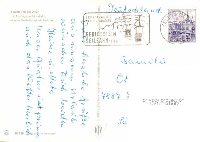 42623473 alte Postkarte Zell Ziller Tirol Grindalm Eigener Seilbahnbetrieb Rohrberg postalisch gelaufen Erhaltung siehe scans [WerneD78] KatCode: 11390335070940