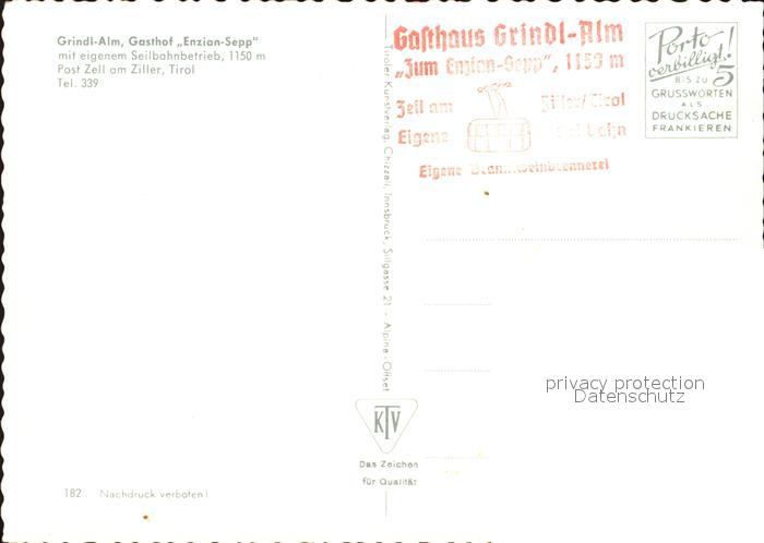 72599469 Zell Ziller Tirol Grindl Alm Gasthaus Enzian Sepp postalisch nicht gelaufen Erhaltung siehe scans [LiesaD40] KatCode: 11390335070940
