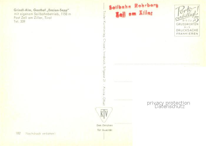 73246141 Zell Ziller Tirol Grindl Alm Seilbahn Gasthaus Enzian Seoo postalisch nicht gelaufen Erhaltung siehe scans [KathaD81] KatCode: 11390335070940
