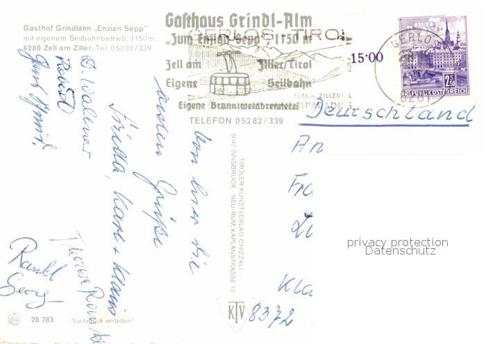 72679922 alte Postkarte Zell Ziller Tirol Grindlalm Gasthaus Enzian Sepp postalisch gelaufen Erhaltung siehe scans [LiesaD40] KatCode: 11390335070940