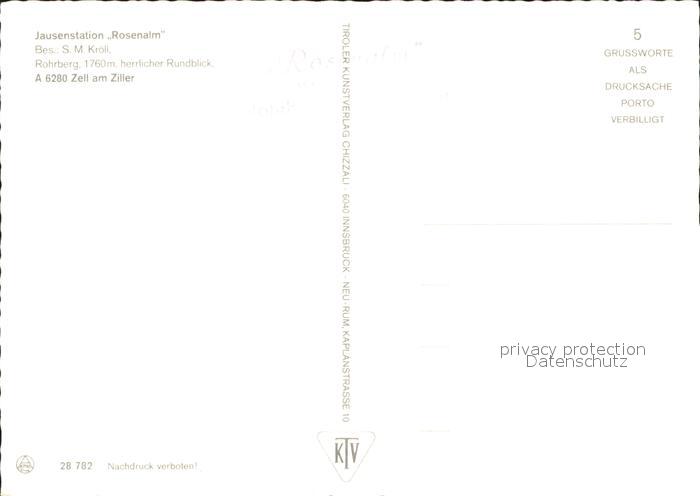 71822325 Zell Ziller Tirol Jausenstation Rosenalm postalisch nicht gelaufen Erhaltung siehe scans KatCode: 11390335070940