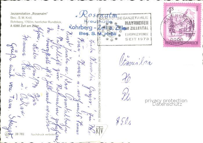 72466471 alte Postkarte Zell Ziller Tirol Jausenstation Rosenalm Terrasse postalisch gelaufen Erhaltung siehe scans KatCode: 11390335070940
