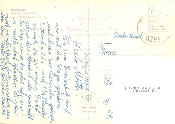 73522173 alte Postkarte Zell Ziller Tirol mit Grindlalm eigner Seilbahnbetrieb Ruhrberg postalisch gelaufen Erhaltung siehe scans [WerneD78] KatCode: 11390335070940