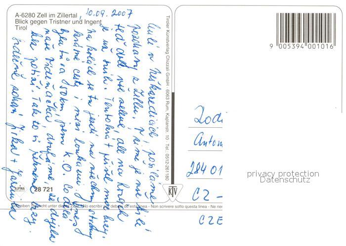 73066669 Zell Ziller Tirol Panorama postalisch nicht gelaufen Erhaltung siehe scans [WerneD78] KatCode: 11390335070940