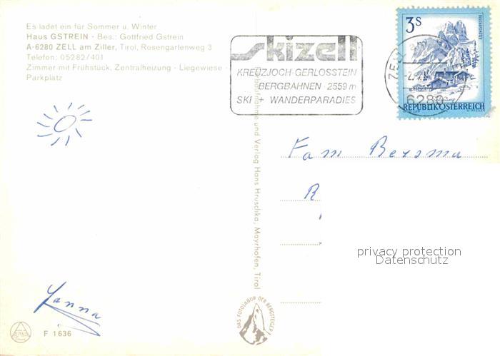 72863702 alte Postkarte Zell Ziller Tirol Pension Haus Gstrein Gesamtansicht mit Alpenpanorama postalisch gelaufen Erhaltung siehe scans [FriedD77] KatCode: 11390335070940