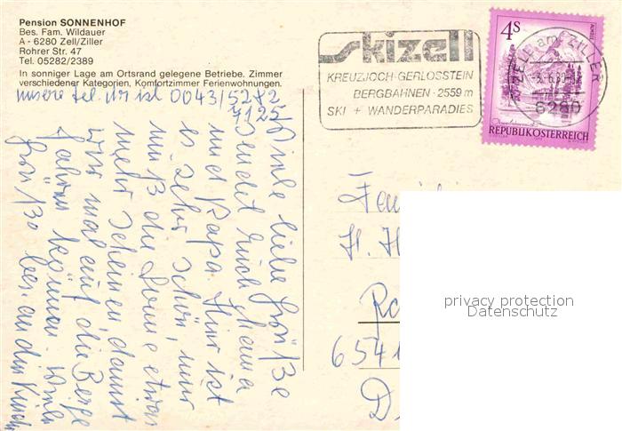 72901712 alte Postkarte Zell Ziller Tirol Pension Sonnenhof Restaurant Panorama Zillertal postalisch gelaufen Erhaltung siehe scans [FriedD77] KatCode: 11390335070940