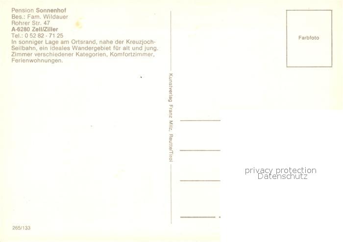 73517939 Zell Ziller Tirol Pension Sonnenhof postalisch nicht gelaufen Erhaltung siehe scans [FriedD77] KatCode: 11390335070940