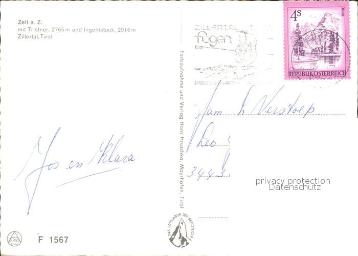 72606426 alte Postkarte Zell Ziller Tirol Trister Ingenstock postalisch gelaufen Erhaltung siehe scans [AndreD76] KatCode: 11390335070940