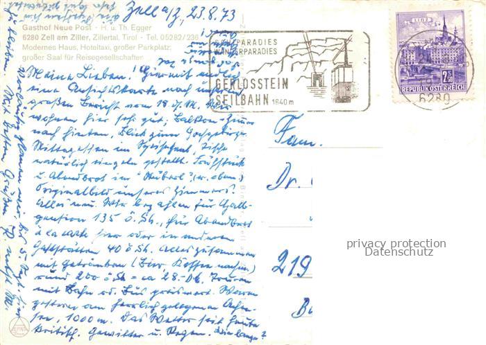 74141823 alte Postkarte Zell Ziller Zillertal Tirol AT Gasthof Neue Post Gastraum Fremdenzimmer postalisch gelaufen Erhaltung siehe scans [FriedD77] KatCode: 11390335070940