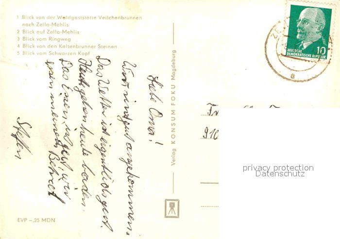 72730405 alte Postkarte Zella-Mehlis Blicke vom Restaurant Veilchenbrunnen Ringweg Kaltenbrunner-STeine Schwarzen Kopf postalisch gelaufen Erhaltung siehe scans [LiesaD40] KatCode: 11110016066092