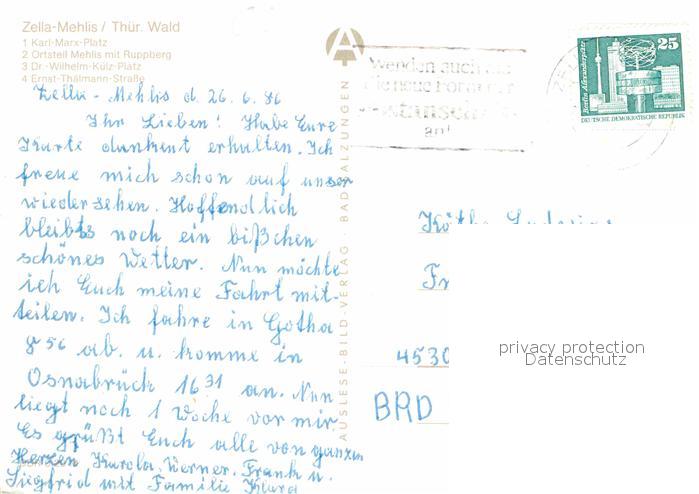 72854656 alte Postkarte Zella-Mehlis Karl-Marx-Platz Ruppberg postalisch gelaufen Erhaltung siehe scans [LiesaD40] KatCode: 11110016066092