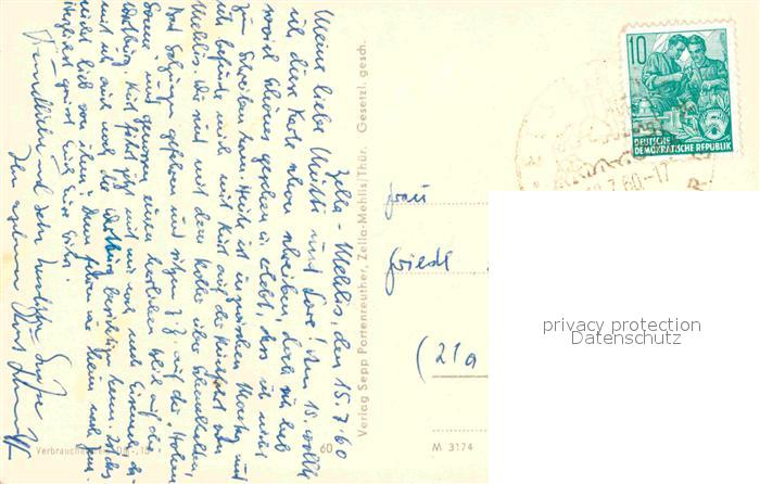 72705889 alte Postkarte Zella-Mehlis Panorama Blick vom Waldhausweg postalisch gelaufen Erhaltung siehe scans [FriedD77] KatCode: 11110016066092