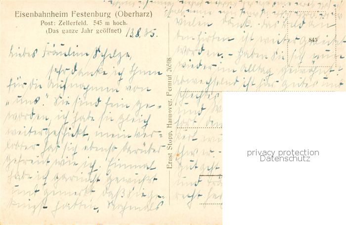 73811849 Zellerfeld Eisenbahn Erholungsheim Festenburg postalisch nicht gelaufen Erhaltung siehe scans [WerneD78] KatCode: 11110003153004