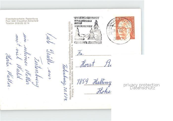 72300551 alte Postkarte Zellerfeld Fliegeraufnahme Eisenbahnherheim Festenburg postalisch gelaufen Erhaltung siehe scans KatCode: 11110003153004