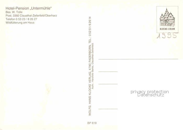 72887246 Zellerfeld Hotel Pension Untermuehle postalisch nicht gelaufen Erhaltung siehe scans [LiesaD40] KatCode: 11110003153004