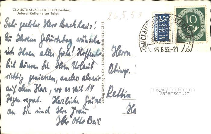 72152291 alte Postkarte Zellerfeld Unterer Kellerhalser Teich postalisch gelaufen Erhaltung siehe scans KatCode: 11110003153004