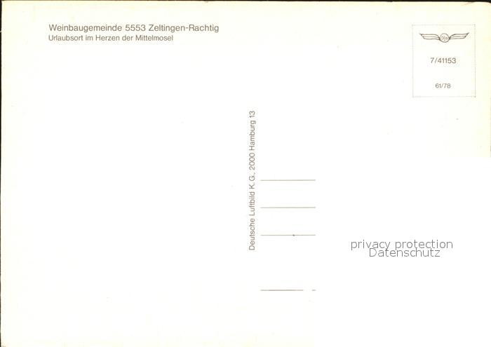 72548755 Zeltingen-Rachtig Fliegeraufnahme Weinbaugebiet Mosel postalisch nicht gelaufen Erhaltung siehe scans [LiesaD40 kv021box] KatCode: 11110007231136