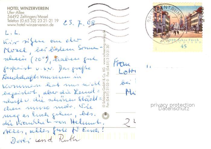 73332149 alte Postkarte Zeltingen-Rachtig Hotel Winzerverein postalisch gelaufen Erhaltung siehe scans [LiesaD40] KatCode: 11110007231136
