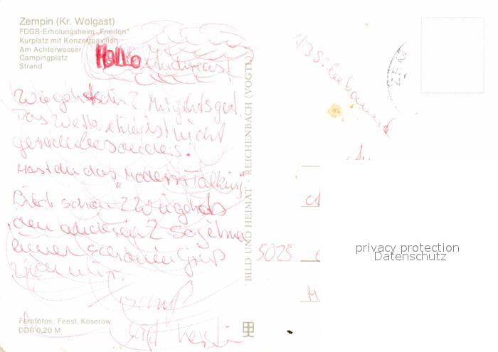 72742951 alte Postkarte Zempin Erholungsheim Frieden Konzertpavillon Strand Camping postalisch gelaufen Erhaltung siehe scans [LiesaD40] KatCode: 11110013059105