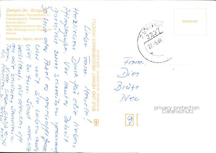 72383279 alte Postkarte Zempin Fischerhaus Camping Konzertplatz Strand postalisch gelaufen Erhaltung siehe scans KatCode: 11110013059105